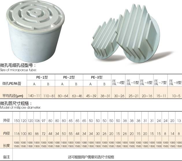 4、微孔PE材料耐温≤80℃;微孔PA材料耐温≤100℃;